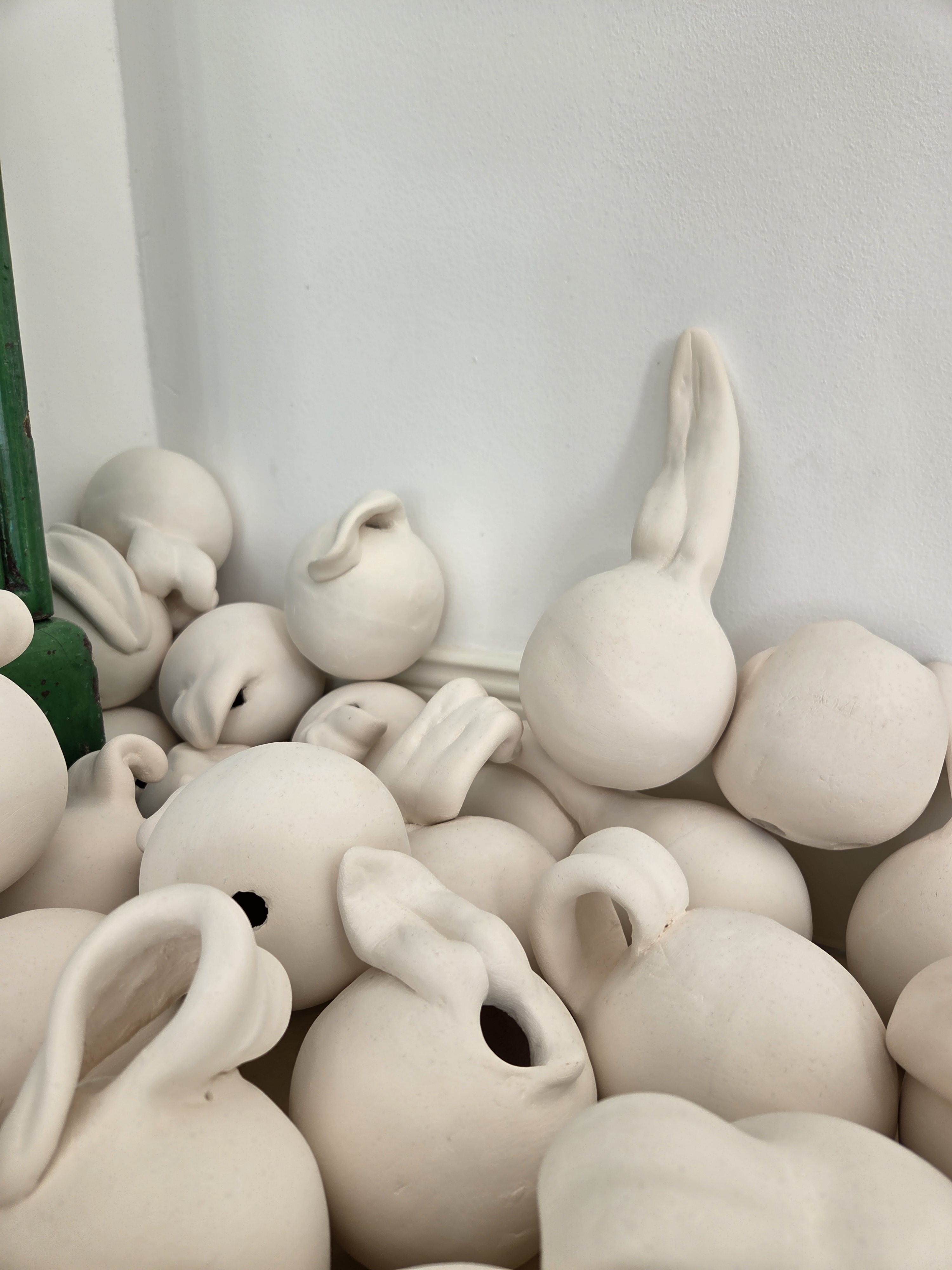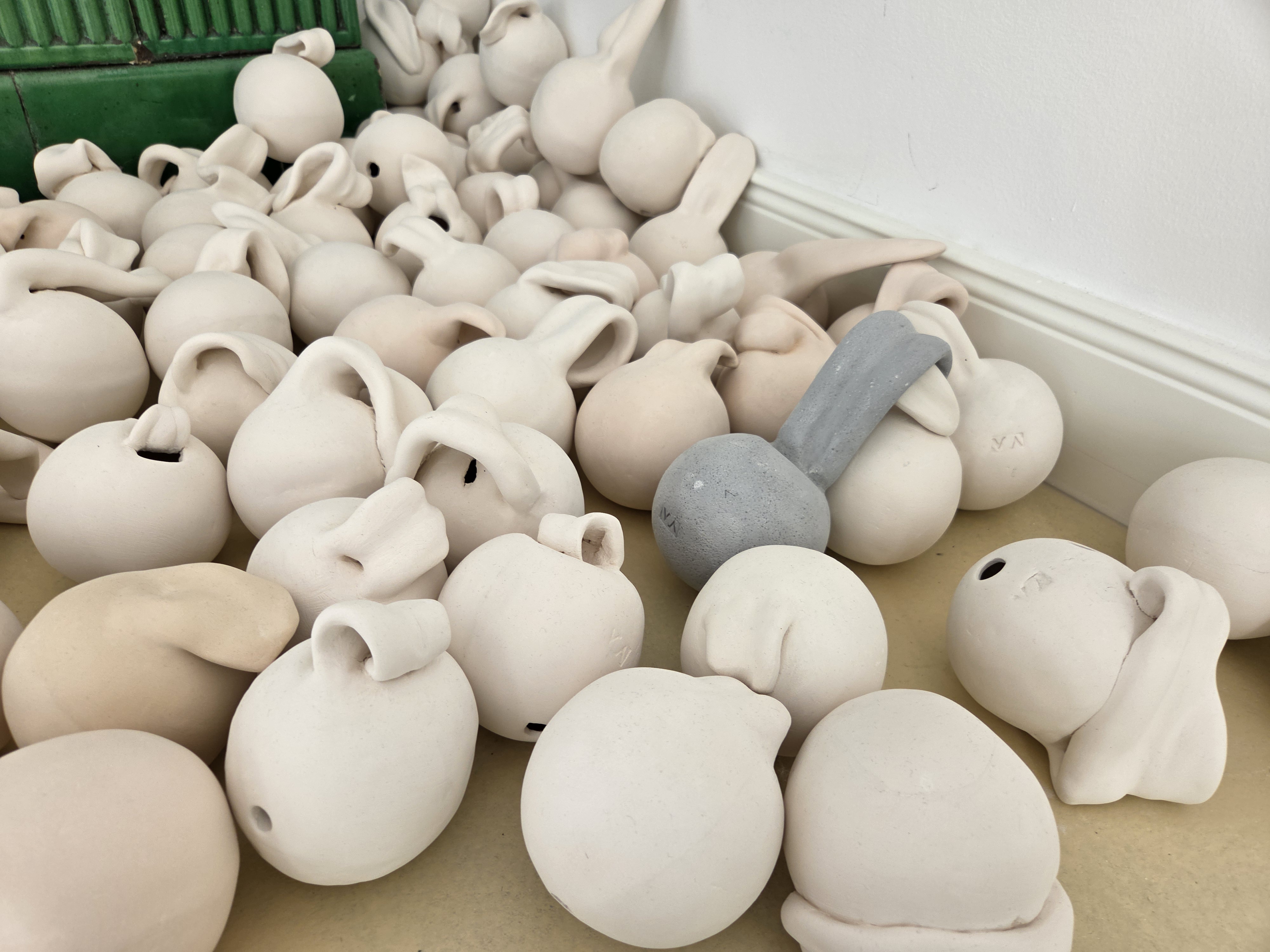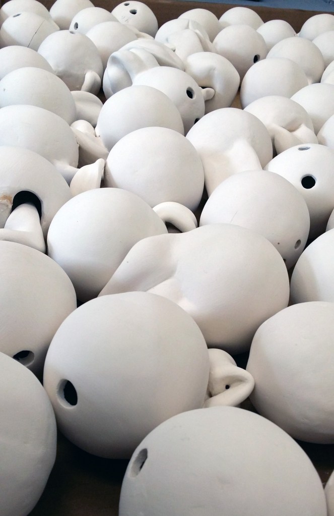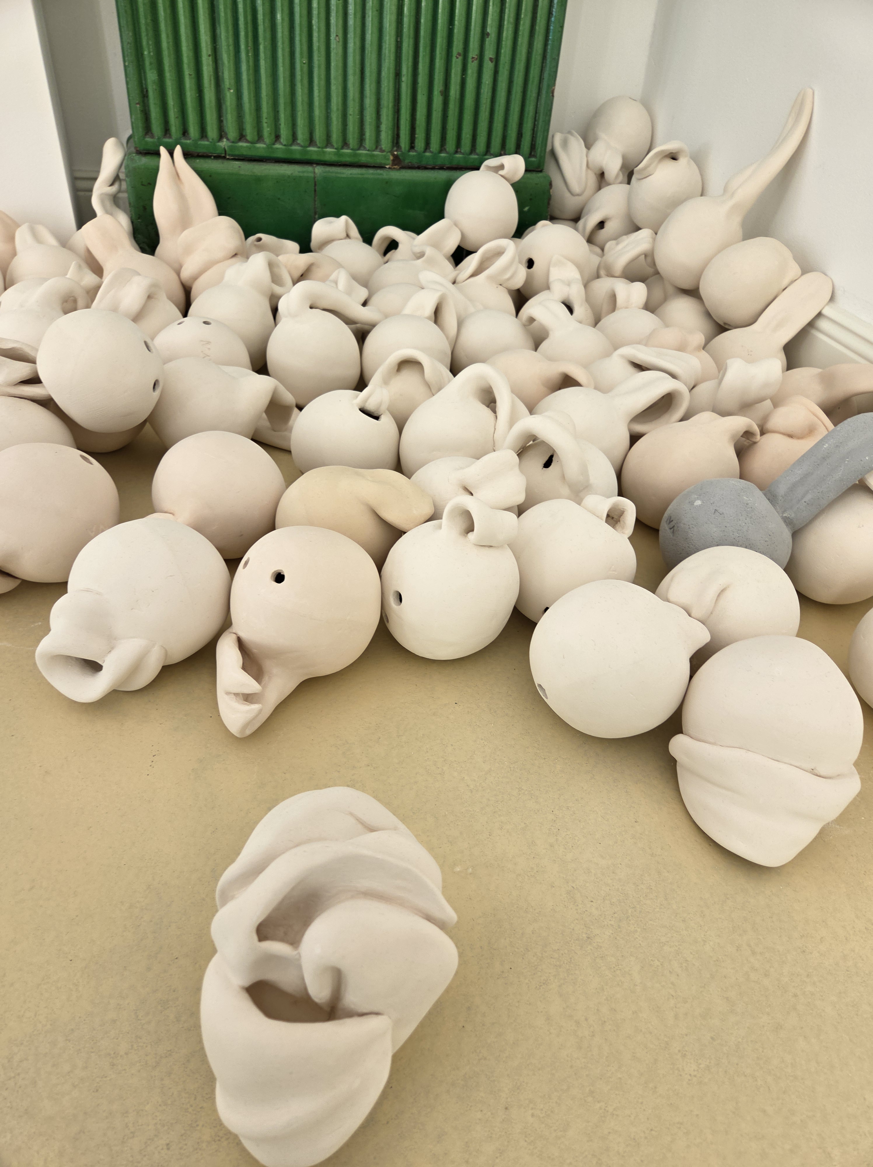 Los Deslenguados | installation view 80 unglazed ceramic spheres medidas variable |variable measures on progress 2019-2025 (Detail) Relacionado